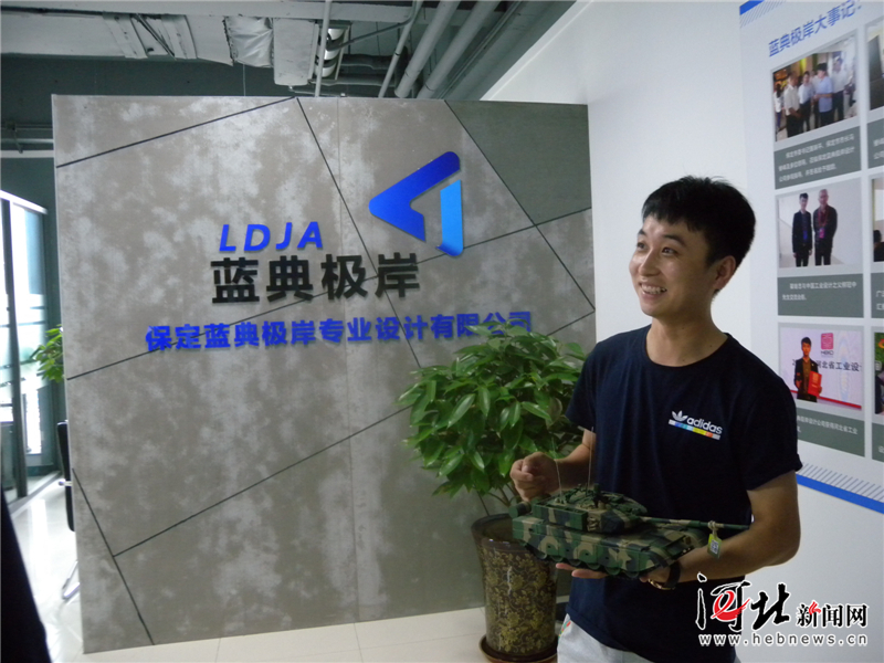 保定大學(xué)科技園內(nèi),創(chuàng)業(yè)者翟繼忠正在介紹自己的創(chuàng)業(yè)項(xiàng)目。記者董立龍攝