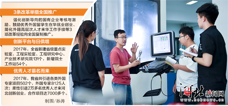更多的優(yōu)秀人才慕名而來。2017年,我省共引進(jìn)各類外國專家項(xiàng)目502個(gè),外國專家8125人次;柔性引進(jìn)2萬多名優(yōu)秀人才來河北創(chuàng)新創(chuàng)業(yè),合作項(xiàng)目達(dá)7000多個(gè)。