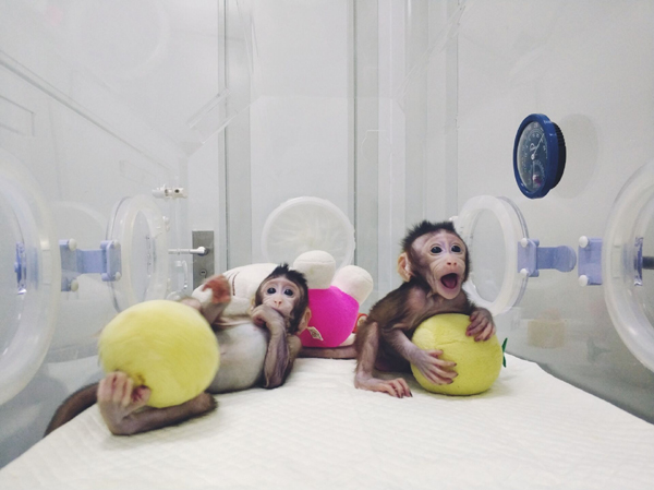 圖為體細胞克隆猴“中中”和“華華”中科院供圖